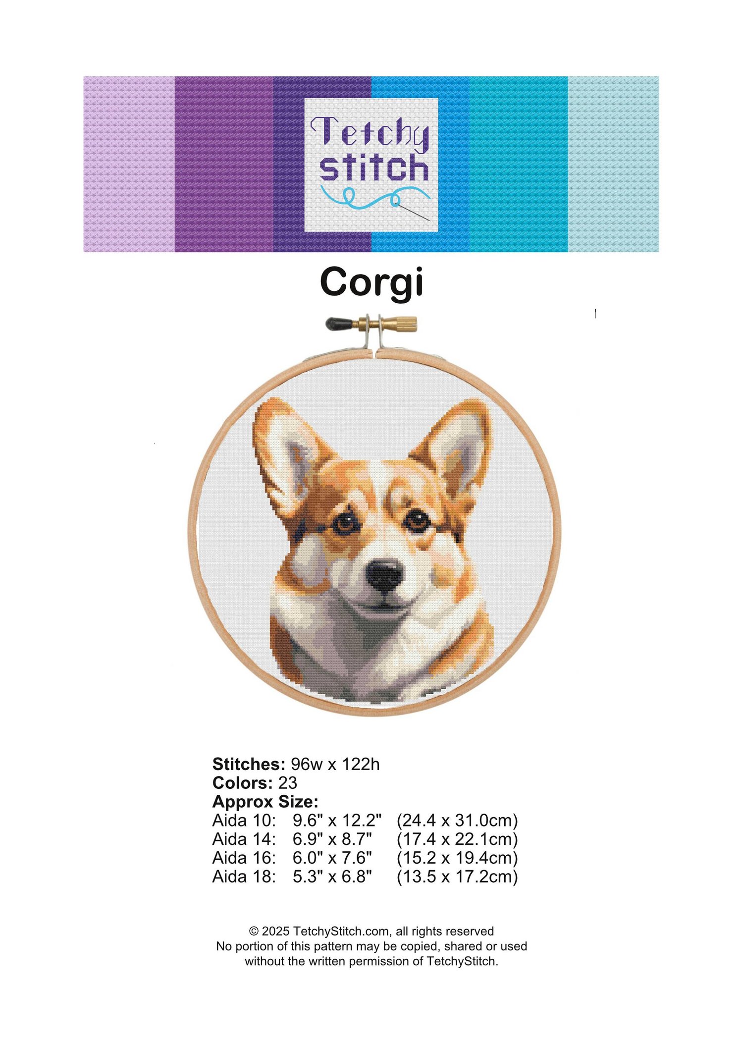 This adorable Corgi cross stitch pattern is cute enough for royalty! Whether you have a Corgi of your own or are looking to stitch up a gift for a dog lover, stitch away on this sweet and simple realistic pet portrait.